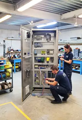 - Verifiche di Sicurezza e Conformità: Continuiamo a garantire nel tempo la sicurezza dei lavoratori. Eseguiamo periodicamente test strumentali e verifiche secondo le norme IEC/EN 60204-1, assicurandoci che ogni modifica o aggiornamento mantenga l’impianto totalmente conforme e sicuro.